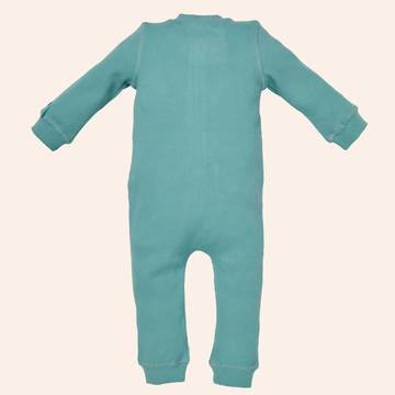 This will be your little one’s favorite outfit. It’s made in super soft textured organic cotton waffle knit fabric. Beautiful muted solids and yarn dyed stripes can be worn out and about, or comfortably to naptime or bedtime. A full length zipper closure makes dressing easy. Patch pockets come in handy and our YD logo is embroidered at the sleeve.