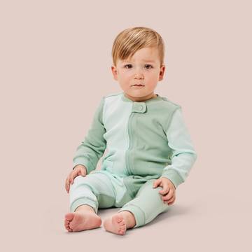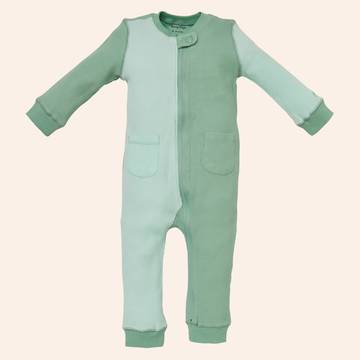 This will be your little one’s favorite outfit. It’s made in super soft textured organic cotton waffle knit fabric. Beautiful muted solids and yarn dyed stripes can be worn out and about, or comfortably to naptime or bedtime. A full length zipper closure makes dressing easy. Patch pockets come in handy and our YD logo is embroidered at the sleeve.
