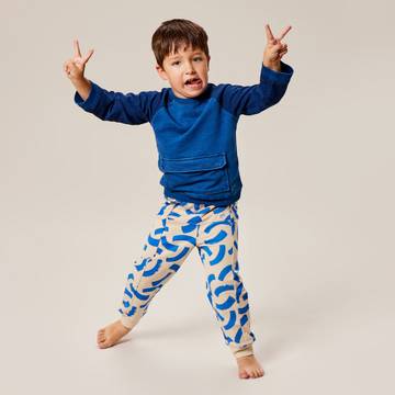 Cool-kid style. Sweatshirt comfort. For the ultimate move-anywhere moment, our indigo sweatshirt is made in cozy French terry that lets your little one bend, twist, and cartwheel without missing a beat.