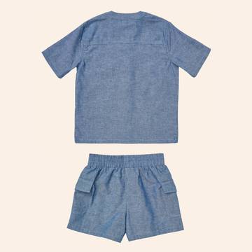 This new set for summer comes in super soft organic cotton chambray. It’s the ultimate summer outfit with easy button-up styling and front pockets, and an elastic waist and cargo pockets on the shorts. Packing for that road trip is easier than ever.