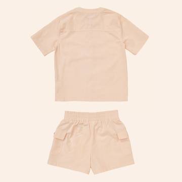 This new set for summer comes in super soft organic cotton chambray. It’s the ultimate summer outfit with easy button-up styling and front pockets, and an elastic waist and cargo pockets on the shorts. Packing for that road trip is easier than ever.