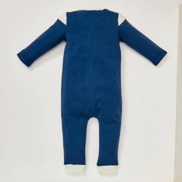 We love a one-and-done outfit. The Kauffman onepiece is made from our organic cotton french terry that now has a bit of Lycra for added stretch and comfort. Color-blocking at the sleeve and an easy zip closure down the front make this onepiece an easy option for your little one.
