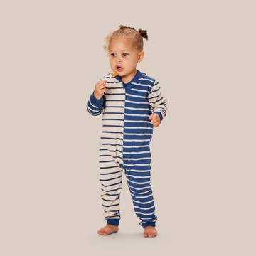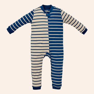 Our basic sleeper is given a fun makeover in playful stripes. The Lawrence sleeper is a one-and-done outfit that is perfect for naptime and playtime alike. These sweet stripes are made in organic cotton that has a bit of stretch that your little one is sure to love. A zipper down the front makes dressing and diaper changes a breeze.