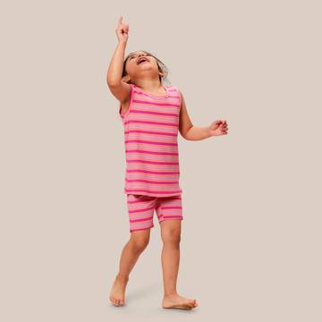 The Mackinac summer set is made from our lovely organic cotton rib. The tank and shorts work perfectly as a matching set, or mixed with any other shorts or tops in our assortment. The bold bright colors will help to bring the sunshine in.
