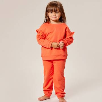 Beautiful everyday French terry sweatshirt with a ruffle made in our signature sustainable organic cotton.  Comes in pastel colors that are easy to wear and pair with the rest of your little one’s wardrobe.  Pairs nicely with our Brooklyn pants.