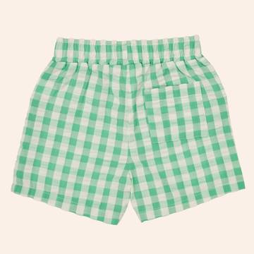The Marco shorts are made from 100% organic cotton seersucker in the sweetest plaid and summer hues. This gorgeous woven fabric has a lovely texture that is both comfortable and stylish. You won’t have to worry about tricky snaps or zippers, these shorts have elastic at the waist so getting dressed is a breeze. Pair the Marco shorts with the Nantucket shirt for an adorable matching set.