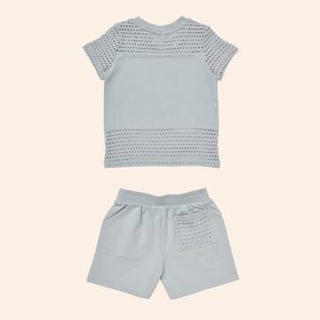Basics are at the core of what we do, but they don't need to be boring. Our core stretch french terry is combined with a textured open-weave knit for a matching set that is perfect for spring days ahead. The Midfield top and the Fairway shorts are a perfect match and will seamlessly blend with anything in your child's closet.