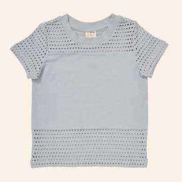 Shopping with us at Young Days means you’ll find basics that are never boring. The Midfield top is styled like your favorite tee and features a mix of fabrics that are soft, textural, and comfortable. The body and sleeves are made from our new crochet knit fabric, with our signature stretch cotton jersey at the body.