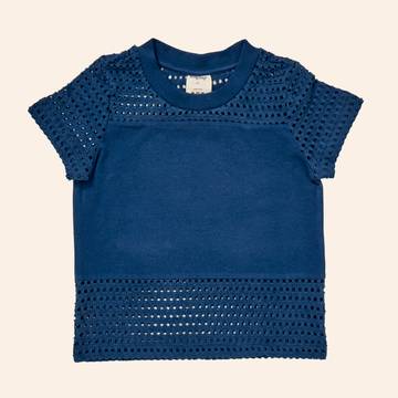 Shopping with us at Young Days means you’ll find basics that are never boring. The Midfield top is styled like your favorite tee and features a mix of fabrics that are soft, textural, and comfortable. The body and sleeves are made from our new crochet knit fabric, with our signature stretch cotton jersey at the body.
