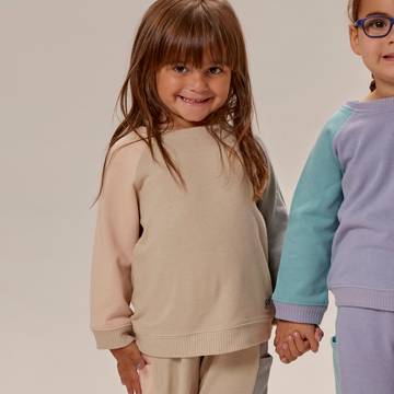 Our colorblock crewneck is made from different panels of organic super soft French terry and a recycled brushed Hacci.  Your kids will love putting this on.  It comes in several different combos of earth tones that will pair with just about anything, or can be worn as a set with the colorblock sweatpant.