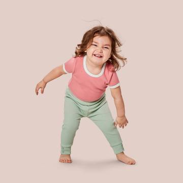 Made from super soft cotton rib, the Pacific onesie is our favorite basic item for spring. The textured fabric feels luxurious and the contrast bindings give a nod to retro sportswear. With a bit more style than a basic onesie, prepare to stand out on the playground.