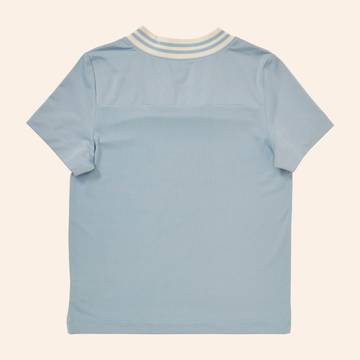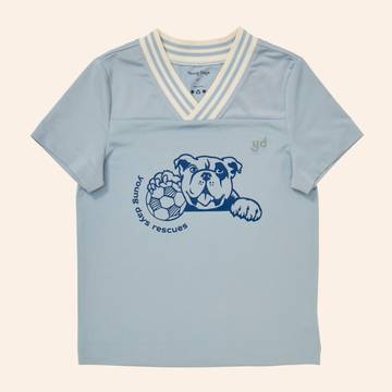 The Sidelines top was inspired by our favorite sports jerseys and features sporty stripe trims and playful team graphics. We’re excited to launch a new fabric - a soft and sporty mesh that will have you cheering on the home team.