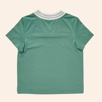 The Sidelines top was inspired by our favorite sports jerseys and features sporty stripe trims and playful team graphics. We’re excited to launch a new fabric - a soft and sporty mesh that will have you cheering on the home team.