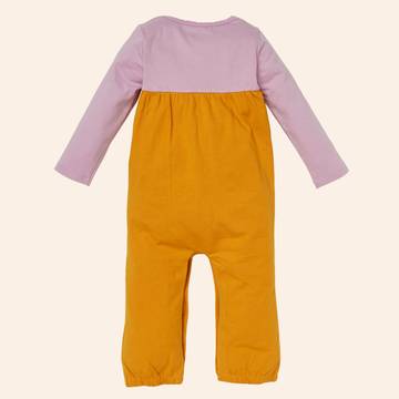 We love the playful color blocking on this simple and sweet jumpsuit. This is the perfect “one and done” outfit for playing at home or on the go. Our organic cotton jersey has a bit of spandex for the most comfortable fit for your busy little one.