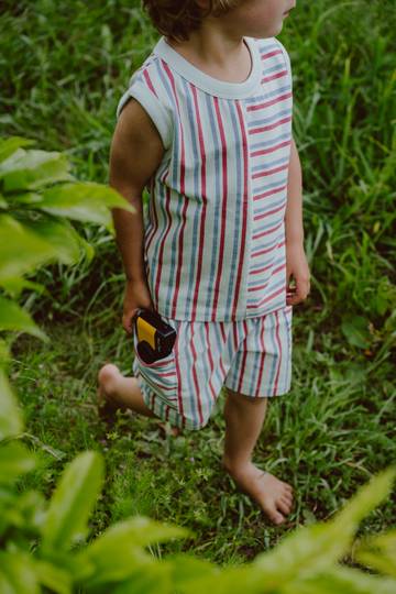 Colorblocking is a science and an art form and we've taken it to the next level with stripe blocking. These shorts are an easy summer staple with a comfy elastic waist and side seam patch pockets that hold all the seashells and all the snacks.