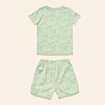 Sets are a one and done outfit that make shopping easier than ever, leaving more time to plan that summer getaway. This printed short sleeve set features a binding at the hem and easy pull-on short styling.