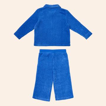 The Jet Set is our soft velour matching set designed for kids on the move. Made for family travel, holiday gatherings, and cozy moments in between. It’s where style meets comfort and coordination meets chaos. Made from super soft velour and featuring a zip front jacket and wide leg pull-on pants.